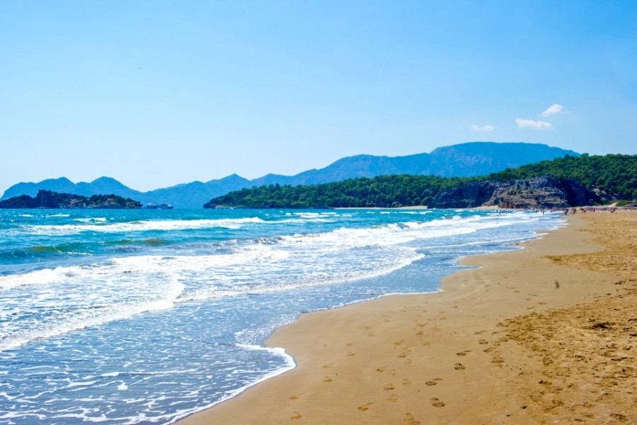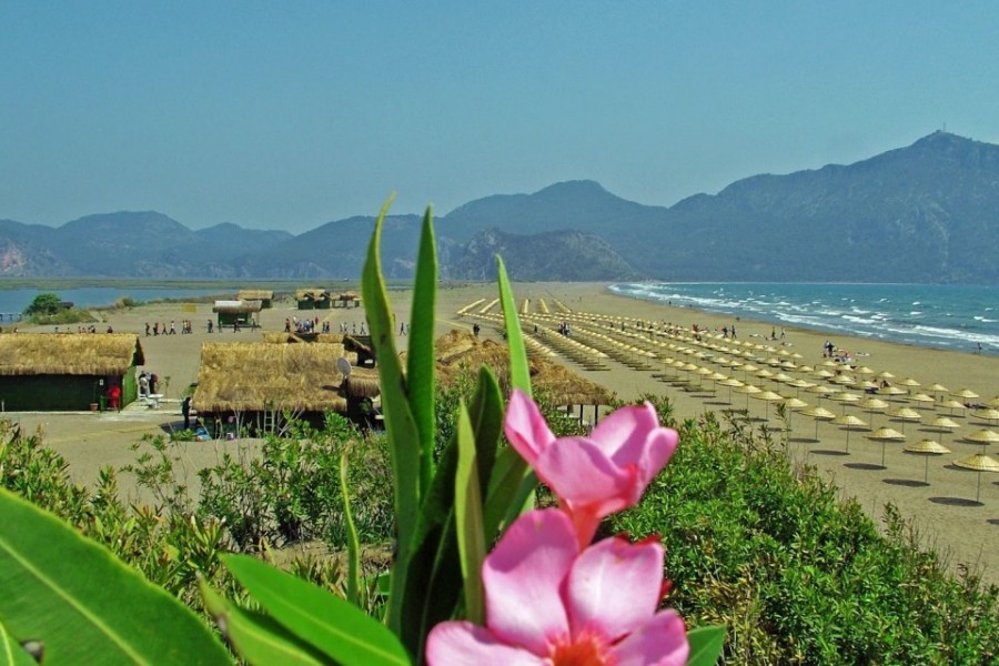 The Dalyan channel, through which the river flows down from Lake Köycegiz to the Meditteranean, meanders its way to the sea via a narrow network of lakes and waterways. The water laps against the rustling reedbeds which stand up to three meters high. The mixture of fresh and brackish water has made this delta the perfect home for numerous species of birds, fish and other aquatic wildlife. The Meditteranean can be reached by boat, the impressive journey only taking 30 to 40 minutes. The delta mouth is nearly completely closed off by the 6km long Iztuzu beach which has been labelled one of Europe’s finest beaches. It is a gorgeous sandy beach with the delta on one side and the turquoise Meditteranean on the other. You can also visit the Sarigerme beach, as an alternative. It too is a quiet and dazzlingly beautiful sandy beach which can best be reached by scooter, the journey taking about 40 minutes. On the way there, there are plenty of places where you can take photos or have a picnic. Driving or sailing inland is also to be recommended: you can take a boat trip up river to Lake Köycegiz which makes a lovely and refreshing day trip.